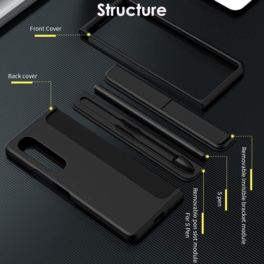 Samsung Galaxy Z Fold 3 Shockproof S Pen Stand Cover-Black